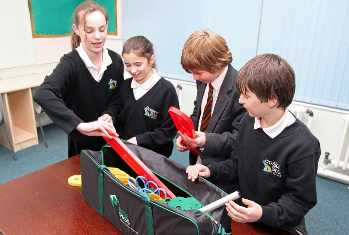 Two holdall bags brimming with MTa Pass components, a teacher's guide, and a comprehensive range of worksheets to help with learning reviews and transfer.